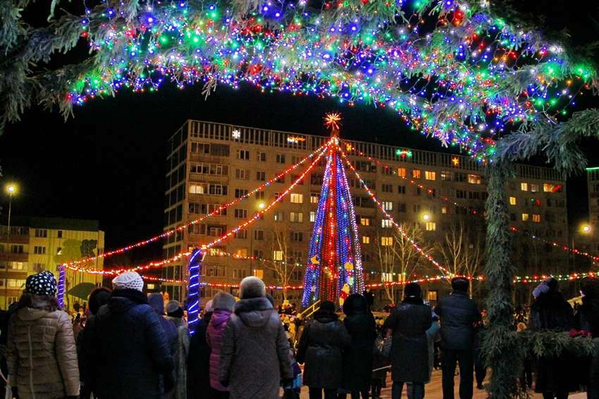 Главная ёлка зажглась на центральной площадке Камских Полян. Дед Мороз, Снегурочка и артисты подготовили праздничное представление.