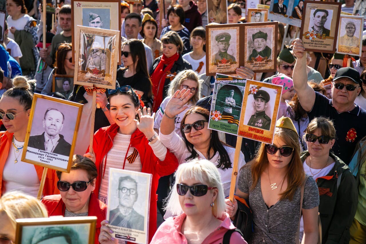 Горожане с портретами своих родственников, воевавших в Великой Отечественной войне, прошли около двух километров. Десятки тысяч человек, у некоторых было по несколько фотографий в руках. Всех их объединило желание мирного неба над землей и память о близких, которые в холод и зной проходили сотни километров на пути к Победе.