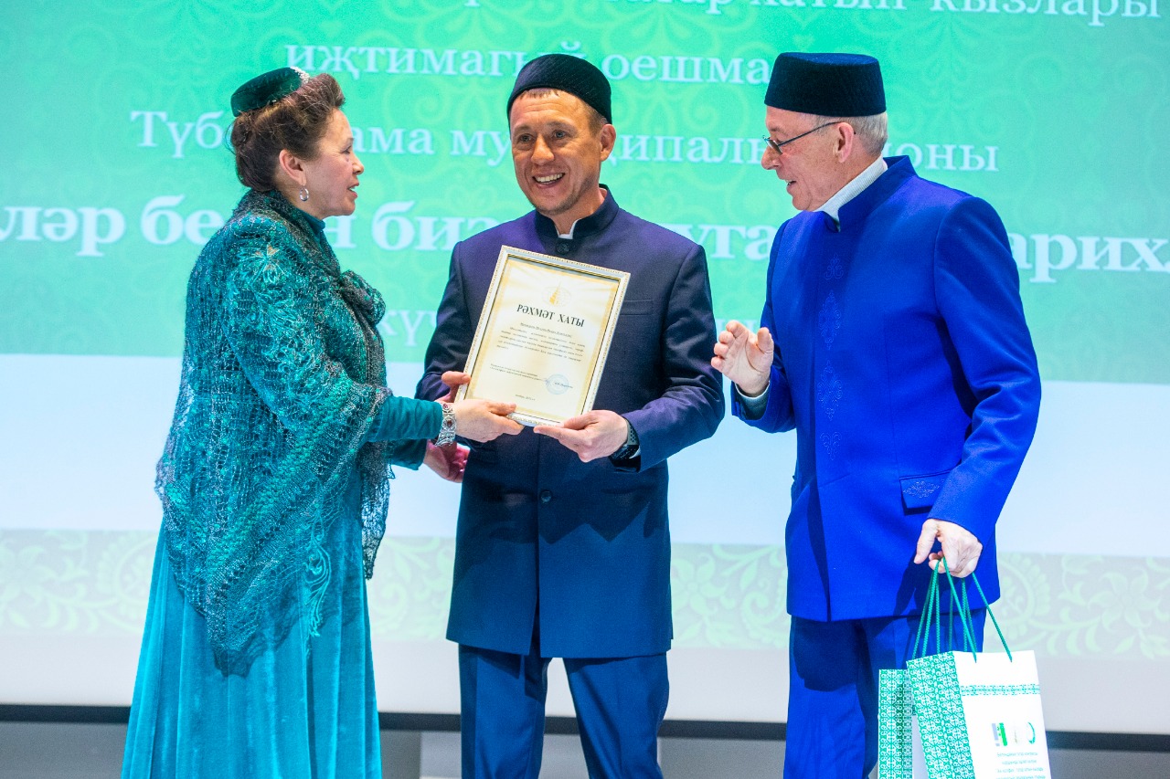 После перешли к награждению самых активных работников Нижнекамска, которые внесли особый вклад в сохранение татарской культуры, традиций и языка. Кроме того, благодарственное письмо от объединения «Ак калфак» за помощь в организации встречи вручили и Рамилю Муллину.