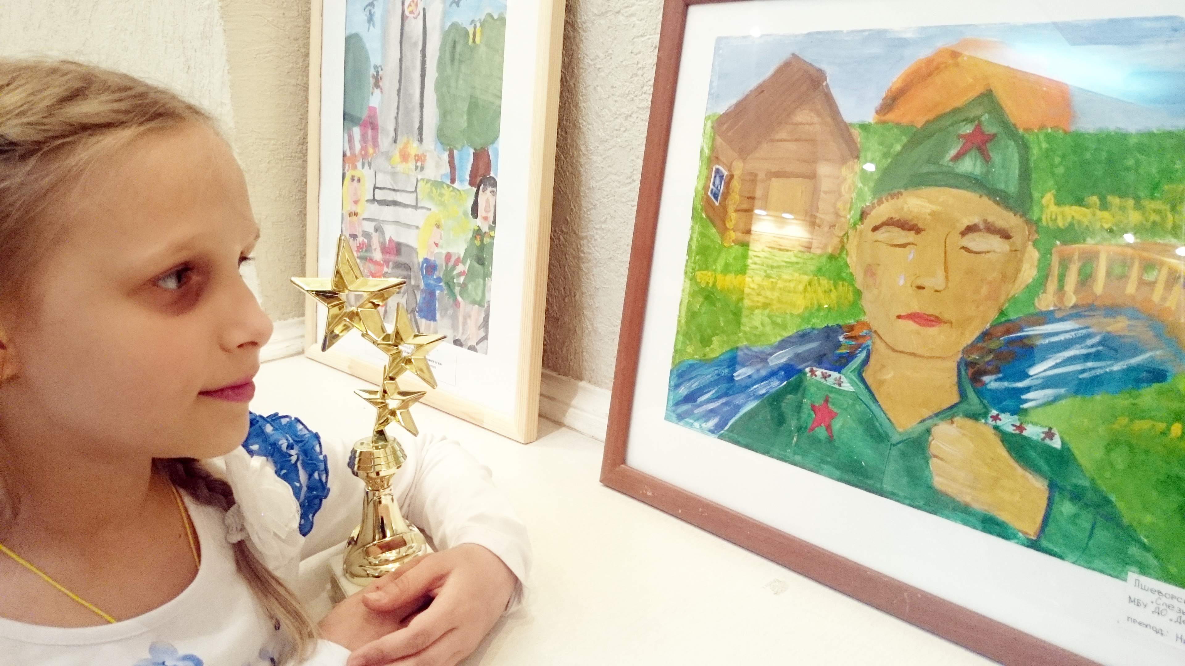 Награды за сохранение той самой памяти получили сегодня несколько десятков нижнекамских художников. Им вручили цветы, «звёздные» статуэтки и ценные призы. «Когда меня позвали на церемонию награждения, я испытала счастье, - рассказала нам Настя Лапшина из 25 гимназии. – Я хотела бы всю жизнь быть художницей». А восьмилетняя Лера Пшеворская, кроме рисования, мечтает заниматься дизайном. «Я нарисовала солдата, он плачет, потому что дед и папа умерли, но сдаваться нельзя, поэтому он сжал кулак, - рассказала девочка о своей картине, занявшей второе место. – За солдатом я нарисовала поле, на котором были люди, а теперь уже нет. А дальше – место, где не было войны».