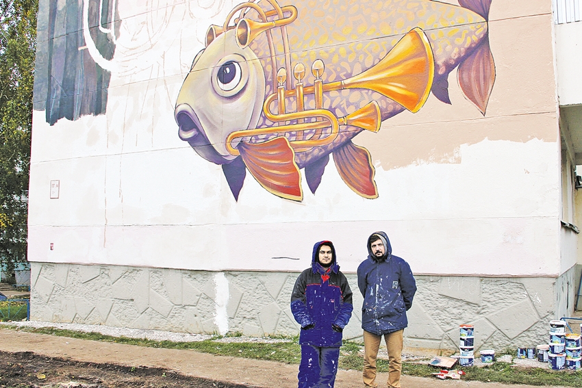 Не составило труда выяснить, что картину создали два молодых казанских художника - Рустам QBic и Игорь IGOU. И оказалось, что Рустам родом из Камских Полян, а Игорь - та-дам! - из Нижнекамска!