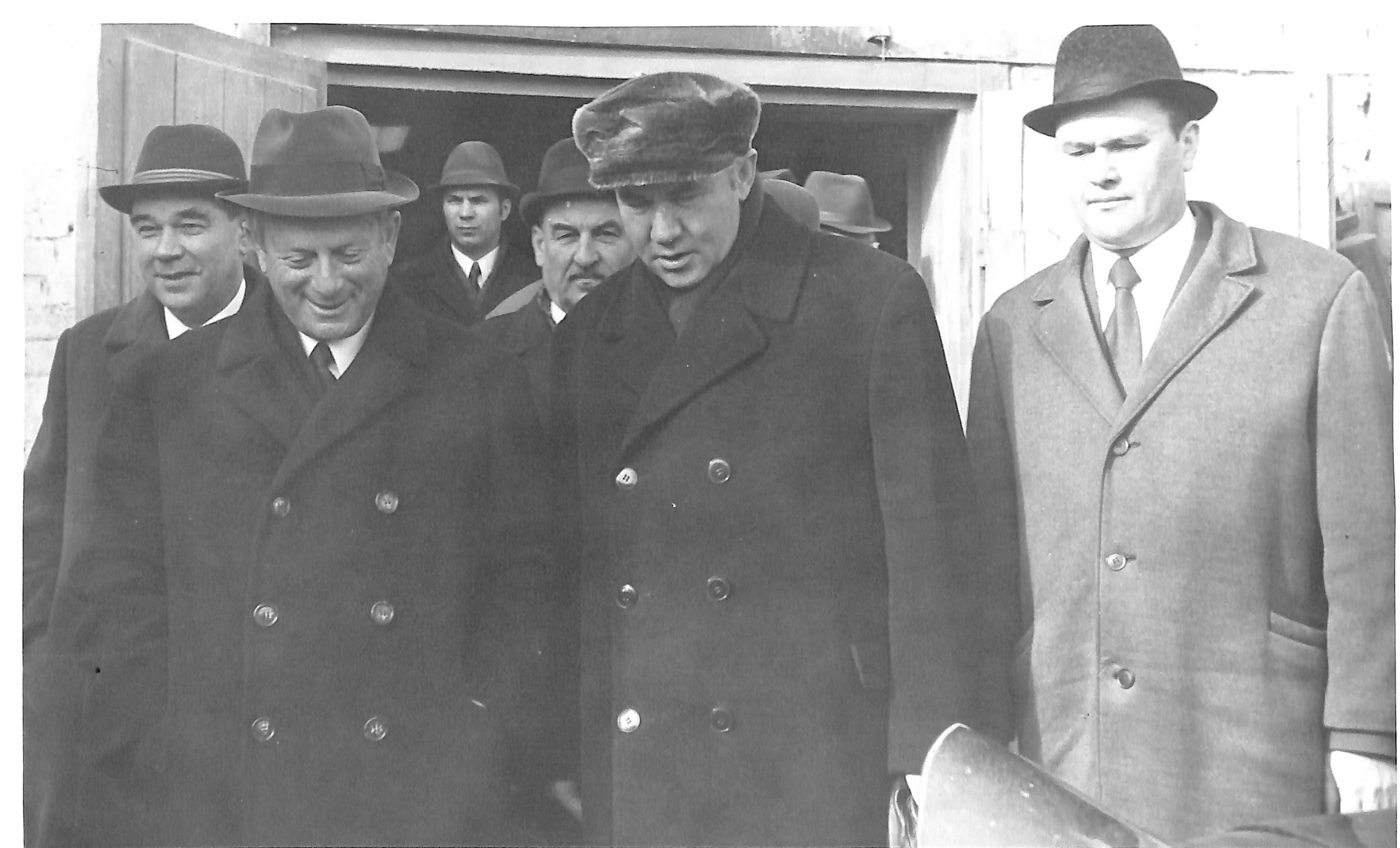 Председатель Совета Министров СССР, член Политбюро ЦК КПСС А. Н. Косыгин на птицефабрике «Красный Ключ». Слева направо: Ф. А. Табеев-Первый секретарь Обкома КПСС ТАССР, Е. Н. Королев – начальник «Татэнергостроя», А. Н. Косыгин, Г. Н.Чигвинцев-директор птицефабрики.