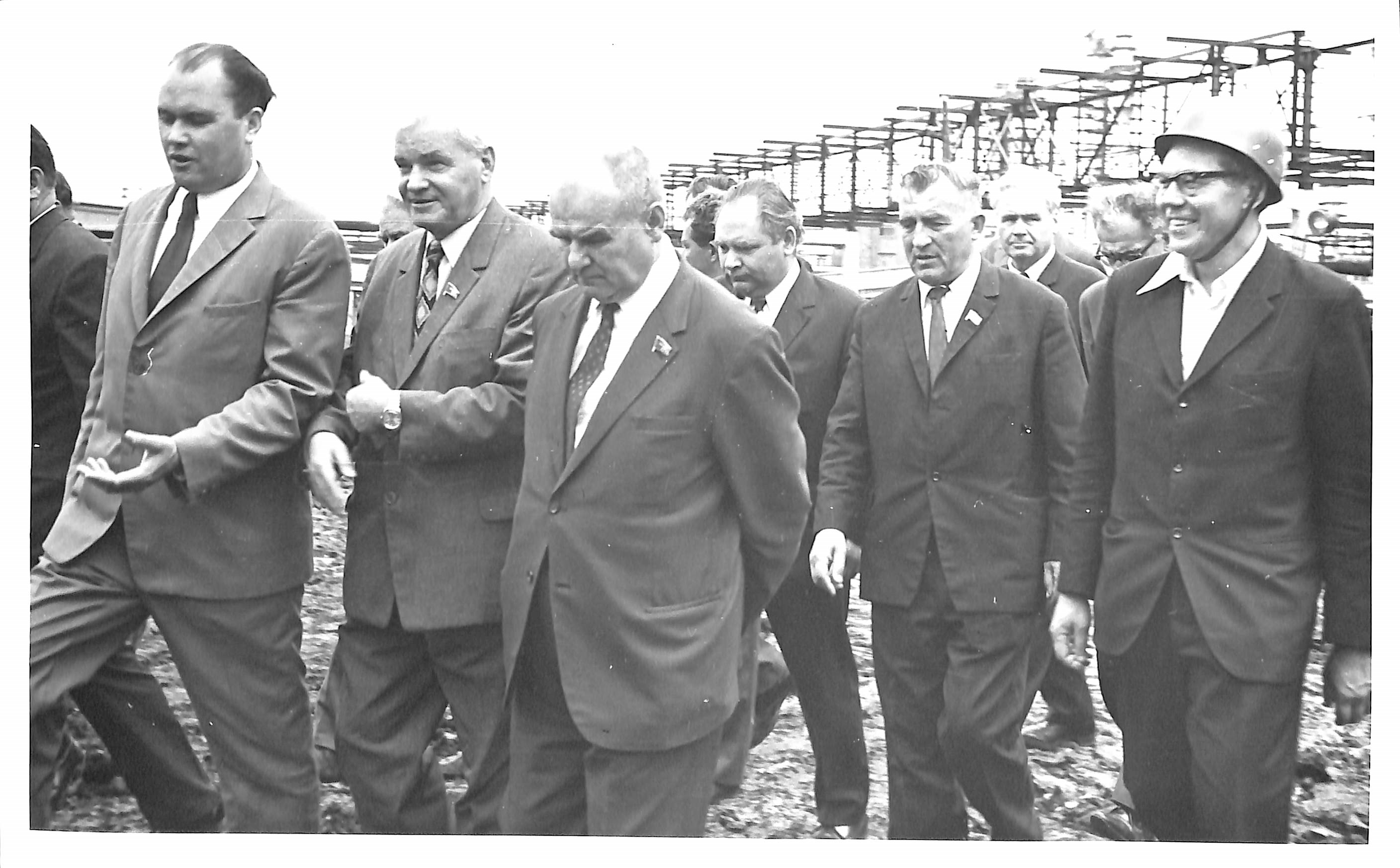 На строительстве химии слева направо: первый секретарь ГК КПСС, Руководитель ГК КПСС (1969-1982 г.г) Садыков Ильдус Харисович, министр Энергетики и электрификации СССР П.С. Непорожный, министр нефтеперерабатывающей и нефтехимической промышленности СССР В. С. Федоров, зав. Отделом строительства Обкома КПСС ТАССР И. А. Валеев