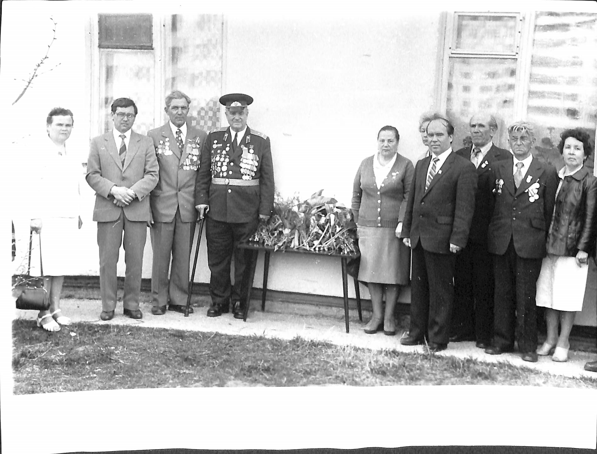 На открытии улицы Кайманова (улица названа в честь Героя Советского Союза, уроженца с. Прости Нижнекамского района Никиты Фадеевича Кайманова). Слева направо: 1. Не выявлено. 2. Роберт Шакирович Шамгунов-первый секретарь ГК КПСС, руководитель ГК КПСС (1982-1989 г.г).3. Михаил Иванович Чертов-сослуживец Кайманова. 4. Виталий Сергеевич Счеревский-сослуживец Кайманова. 5. Александра Васильевна-супруга Кайманова. 6. М. М. Хаснуллин-председатель горисполкома.
