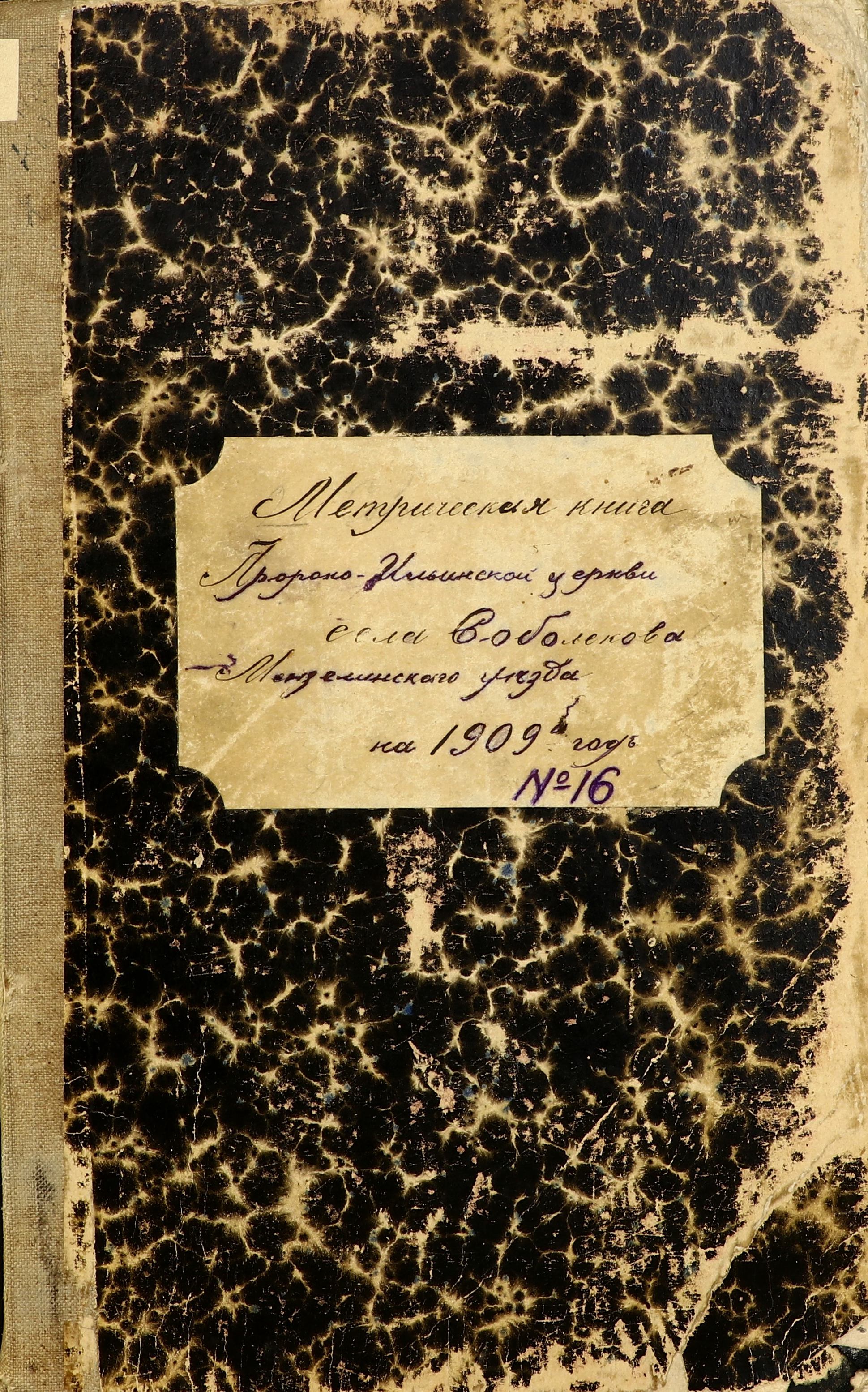 Метрическая книга № 16 Пророка-Ильинской церкви с. Соболекова Мензелинского уезда на 1909 год
