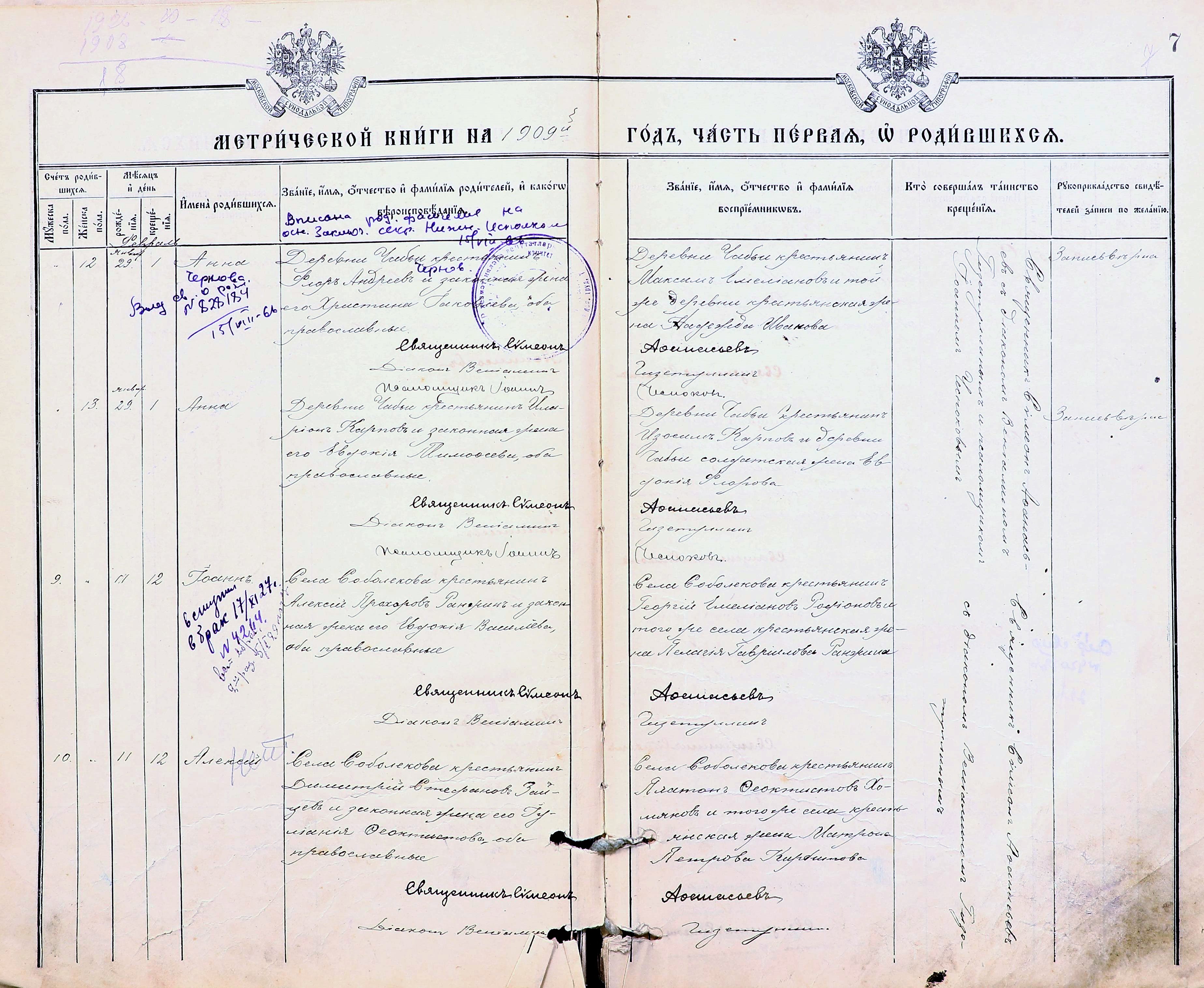Метрическая книга № 16 Пророка-Ильинской церкви с. Соболекова Мензелинского уезда на 1909 год (о родившихся)