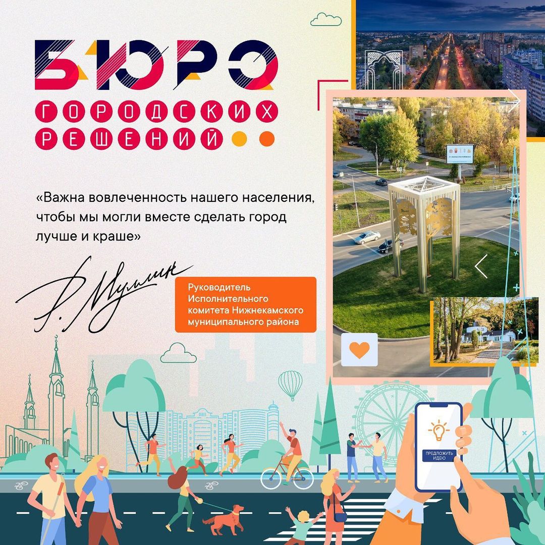 «С руководством республики мы приняли решение в течение трех месяцев эту программу разработать. В мае мы планируем подписать соглашение совместно с правительством и промышленными предприятиями. Это очень большая работа и мы её уже начали. В ближайшие четыре года, я надеюсь, нам удастся решить те вопросы, которые у нас накопились, потому что эта программа будет утверждена на уровне правительства уже с определенными финансовыми источниками. Нужно учитывать интересы всех жителей: города, района, Камских Полян. Сейчас важно ничего не упустить, поэтому хочу обратиться ко всем жителям, чтобы каждый из вас оставлял свои предложения в рамках программы. Определенная задача стоит перед управлениями и предприятиями. Развивать мы должны не только социальное направление, но и экономический сектор. Мы уже создали онлайн-площадку, где можно оставить свои пожелания и предложения. Это страница в Инстаграм – «Бюро городских решений» (@nk.buroidea). Здесь же скоро можно будет обсуждать планируемые проекты, а также увидеть график офлайн встреч», - сказал Рамиль Муллин.